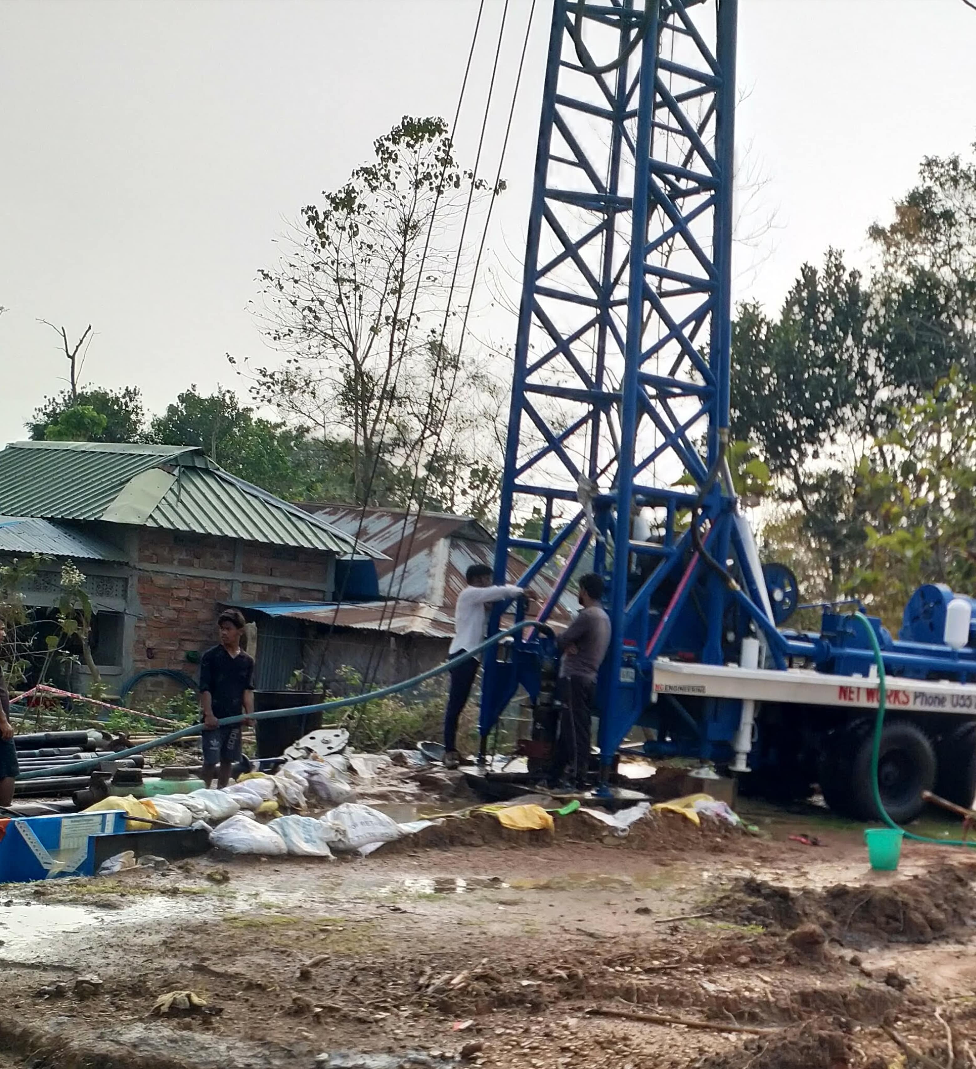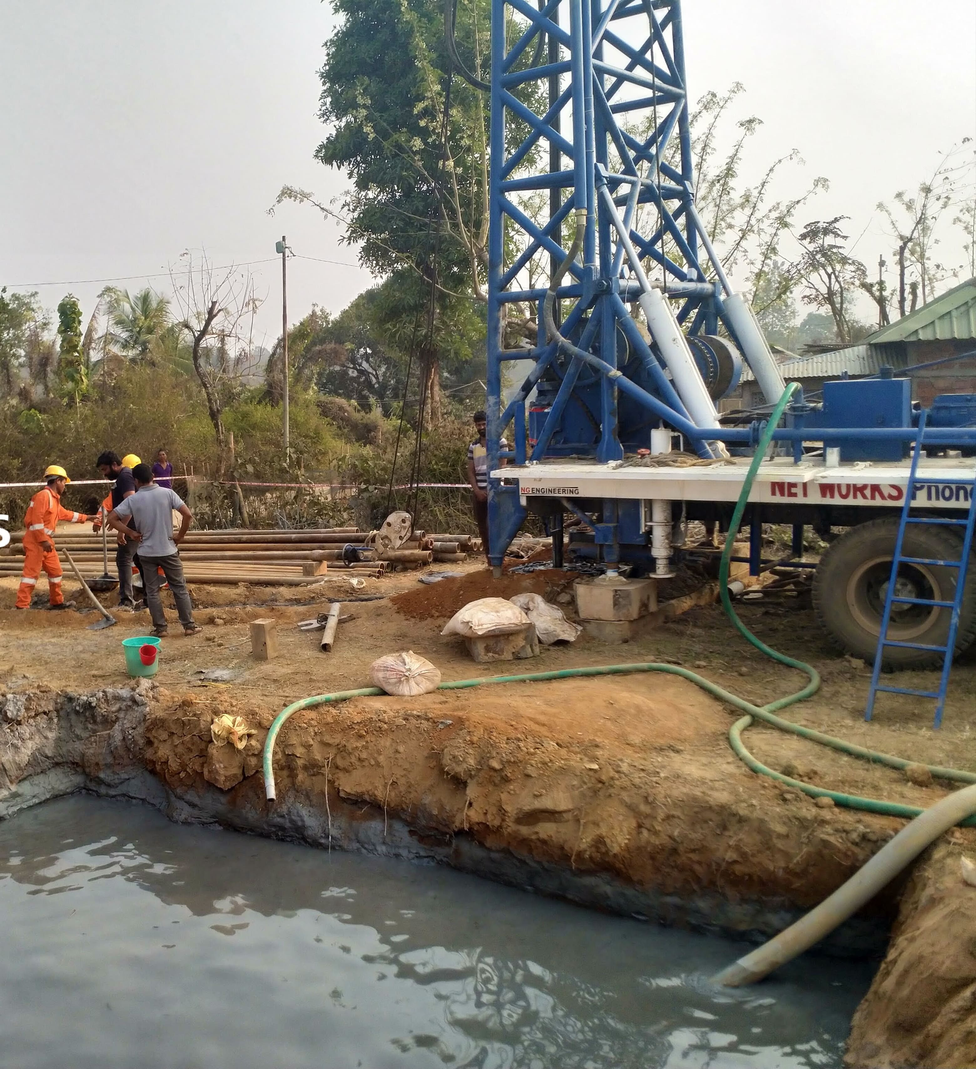 Net Works Exports is fully equipped to take up Deep Tube Well work in India with its own High Powered Rotary Rigs, Air Compressors and accessories to support water availability to the mass programme by Govt. of India. The Rigs available with us can go to a depth of 350m with a diameter of 600mm. A suitable high pressure compressor owned by us is deployed to develop the wells. We are currently working in the State of Tripura and plan to expand into other Indian states soon.